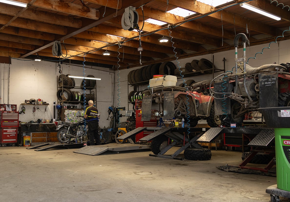 Our Workshop services & repairs all brands of motorcycles, specialising in our brands – Suzuki & Kawasaki.